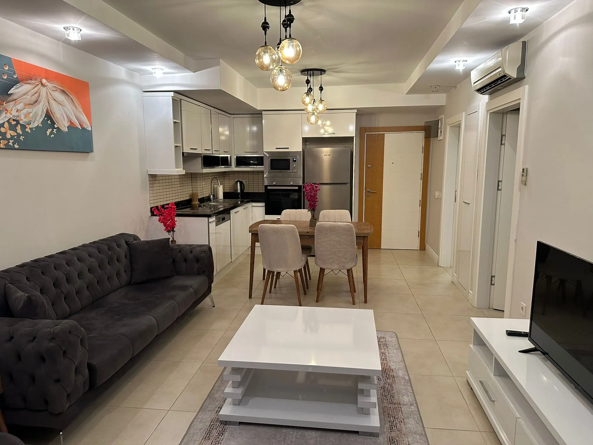 This modern 1+1 apartment is located in the prestigious Vesta Garden Residential Complex in Cikcilli, Alanya. With a total living area of 65 m², the apartment offers a comfortable and stylish living space, ideal for both holiday use and permanent residence.